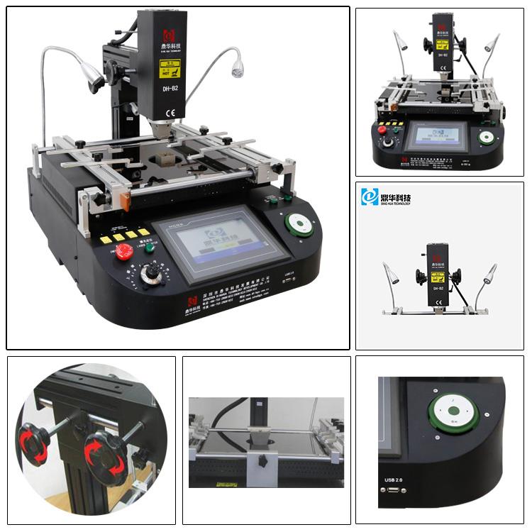 Touch Screen Smart Phone BGA Rework Station 1. Produktbeskrivelse af touch screen smartphone BGA rework station DH-B2 Fire eksterne temperatursensorer registrerer hele temperaturen på BGA på samme tid, Dinghua BGA Rework Station DH-B2 muliggør temperaturovervågning og nøjagtig analyse af...